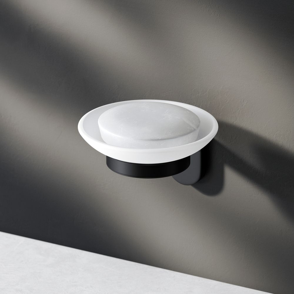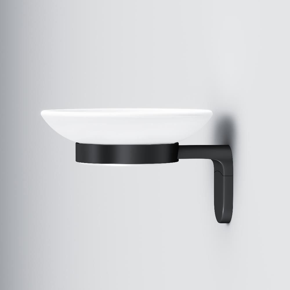 Мыльница с настенным держателем в глубоком черном цвете из коллекции X-Joy, чтобы самое необходимое всегда было под рукой. Идеально впишется в современную ванную комнату и будет радовать глаз каждый день.- Матовое стекло отличается прочностью и лёгкостью в уборке.- Держатель плотно прилегает к стене и не расшатывается за счёт специального шурупного крепления.- Уплотнительный элемент между стеклянной мыльницей и её держателем надёжно фиксирует приспособление.- Выполнена в современном дизайне, легко комбинируется с другими продуктами бренда.