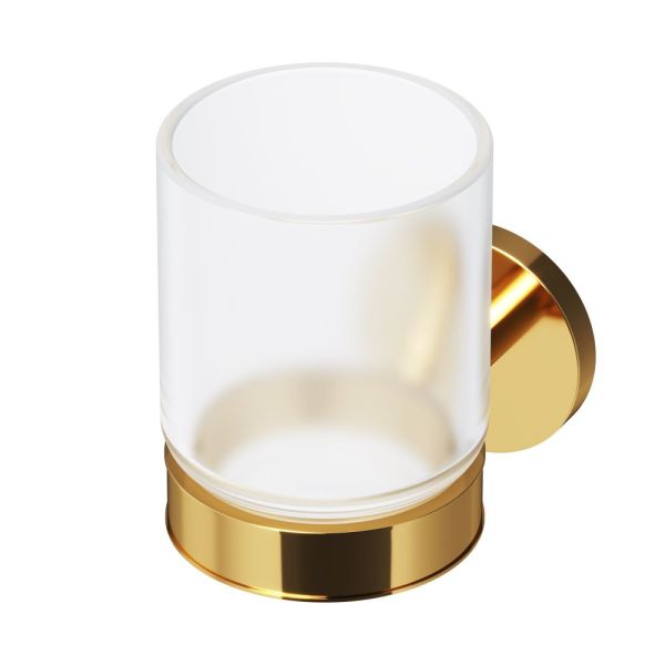 В основе дизайна аксессуаров – контраст между строгими квадратными и плавными округлыми формами. Это небанальное сочетание форм делает облик продуктов универсальным, что позволяет им вписаться в любой интерьер.Стеклянный стакан X-Joy – незаменимый аксессуар для вашей ванной. Подвесная установка делает этот продукт невероятно удобным для использования. Продукт выполнен из сплава металлов высочайшего качества с блестящим золотым покрытием устойчивым к механическим повреждениям и матового стекла.