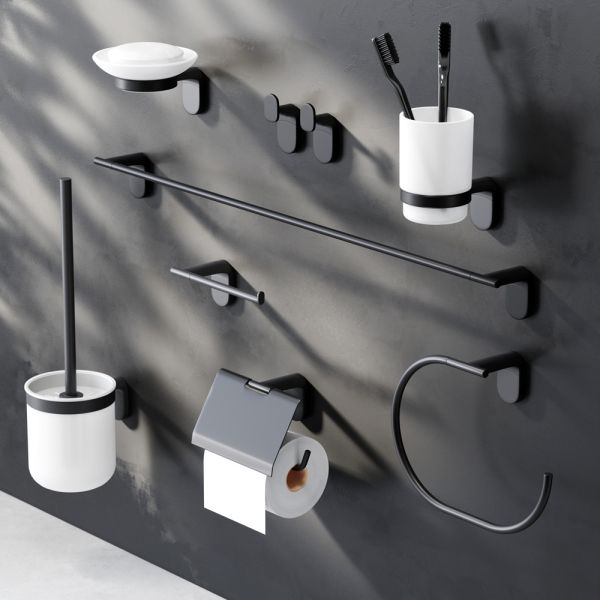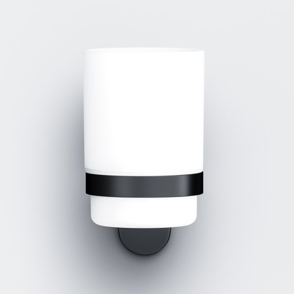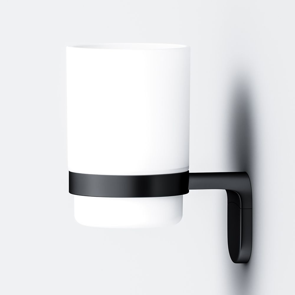 Стакан с настенным держателем в глубоком черном цвете из коллекции Х-Joy, чтобы самое необходимое всегда было под рукой. Идеально впишется в современную ванную комнату и будет радовать глаз каждый день.- Матовое стекло отличается прочностью и лёгкостью в уборке.- Держатель плотно прилегает к стене и не расшатывается за счёт специального шурупного крепления.- Уплотнительный элемент между стеклянным стаканом и его держателем надёжно фиксирует приспособление.- Выполнен в современном дизайне, легко комбинируется с другими продуктами бренда.