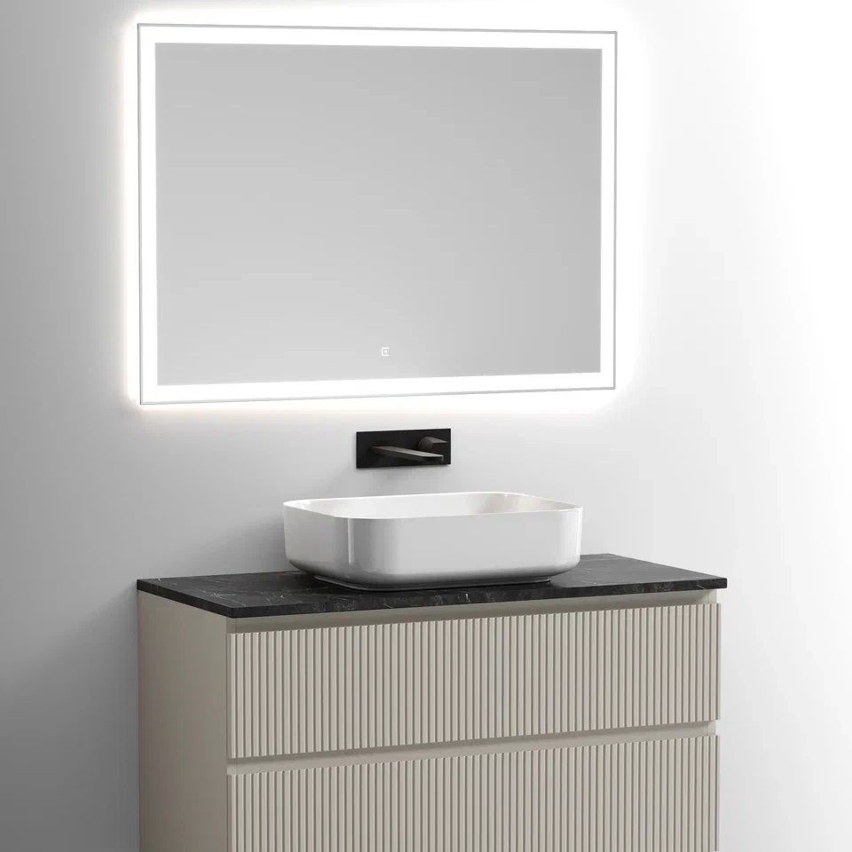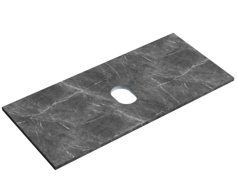 Столешница для ванной комнаты из керамогранита, для установки на подвесную тумбу. C готовым отверстием для установки накладной раковины. Без заранее просверленного отверстия под смеситель.