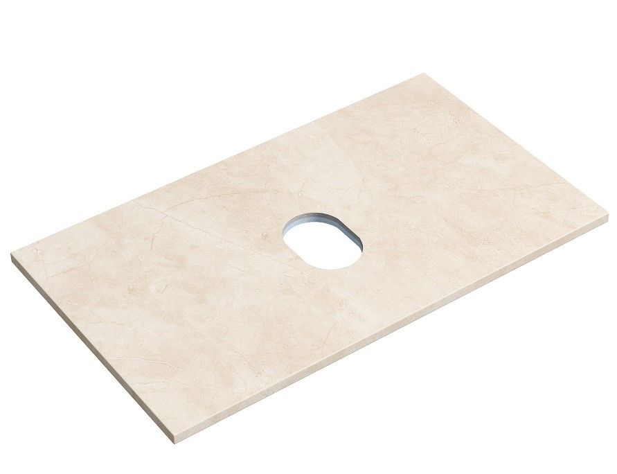 Столешница для ванной комнаты из керамогранита, для установки на подвесную тумбу. C готовым отверстием для установки накладной раковины. Без заранее просверленного отверстия под смеситель.