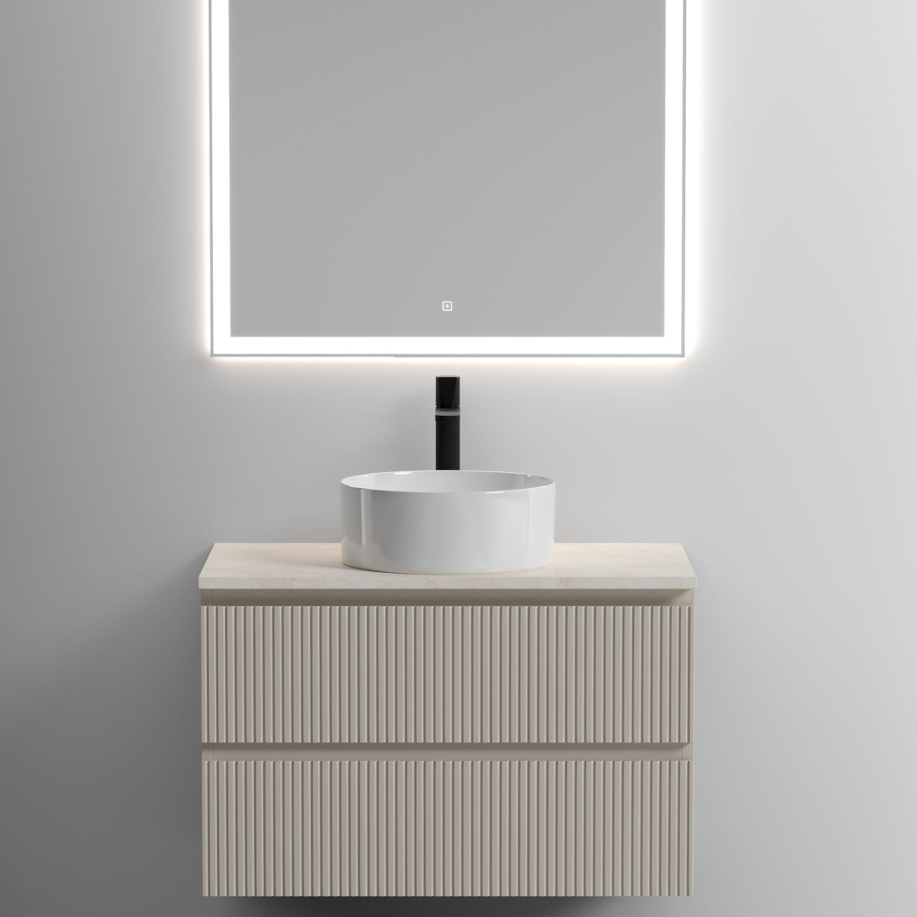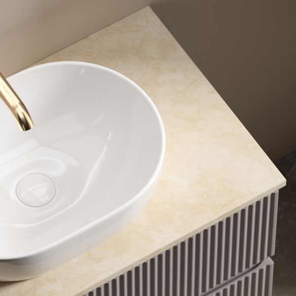 Столешница для ванной комнаты из керамогранита, для установки на подвесную тумбу. C готовым отверстием для установки накладной раковины. С заранее просверленным отверстием под смеситель.