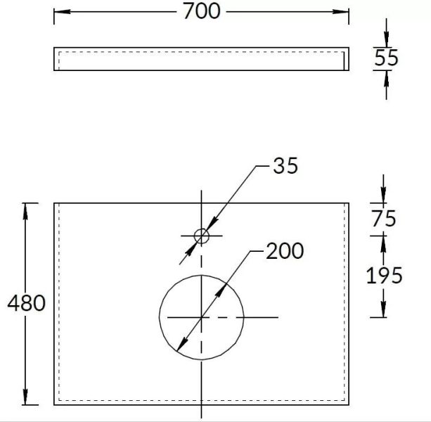 Столешница из керамического гранита «Про Чементо» с отверстием под смеситель. Предназначена для использования раковинами CANALETTO, а также с тумбами MODULA. Отверстия для раковины и смесителя располагаются в центре. Смеситель устанавливается в столешницу (используйте смесители с подходящим типом установки).