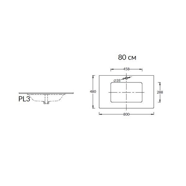 Столешница из керамогранита для раковин, встраиваемых снизу, Монте Тиберио 80 см, белый натуральный
