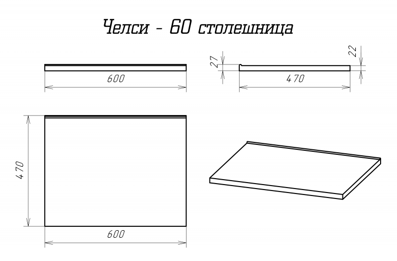 Размер мебели, мм (ШxГxВ): 600x470x30Размер в упаковке, мм (ШxГxВ): 630x500x60Материал упаковки: картон, целлофанВес с упаковкой, кг: 6Цвет мебели: белыйМатериал столешницы: литьевой мрамор