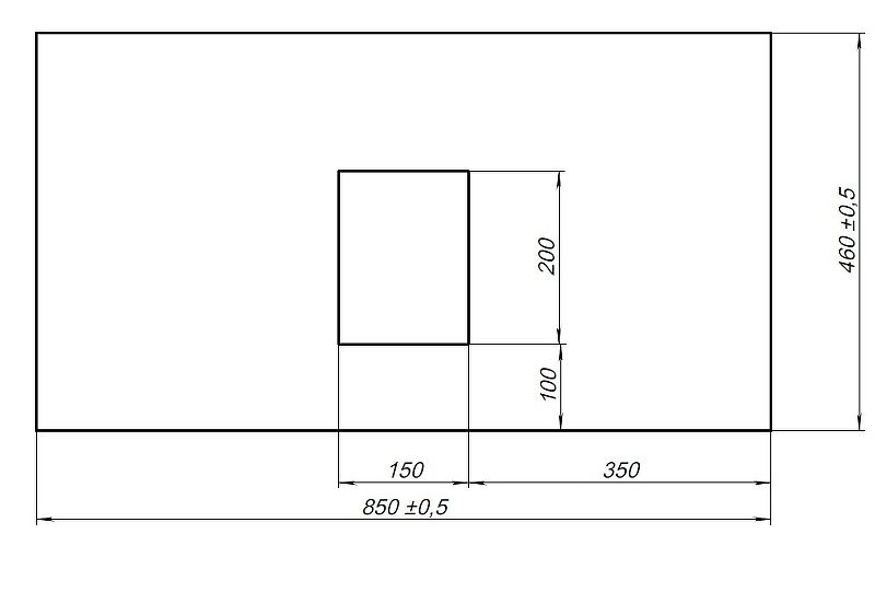 Габариты (ШxВxГ): 850x10x460 мм.