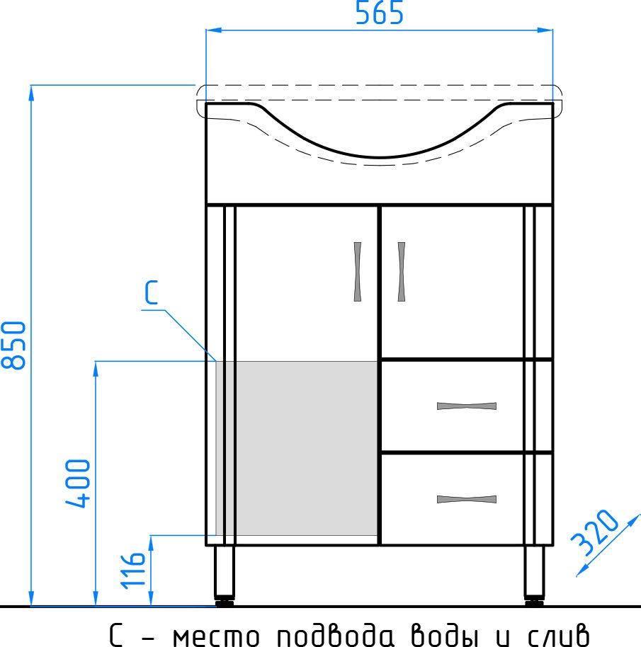 Тумба под раковину Style Line Эко Стандарт 10/2 ЛС-00000103