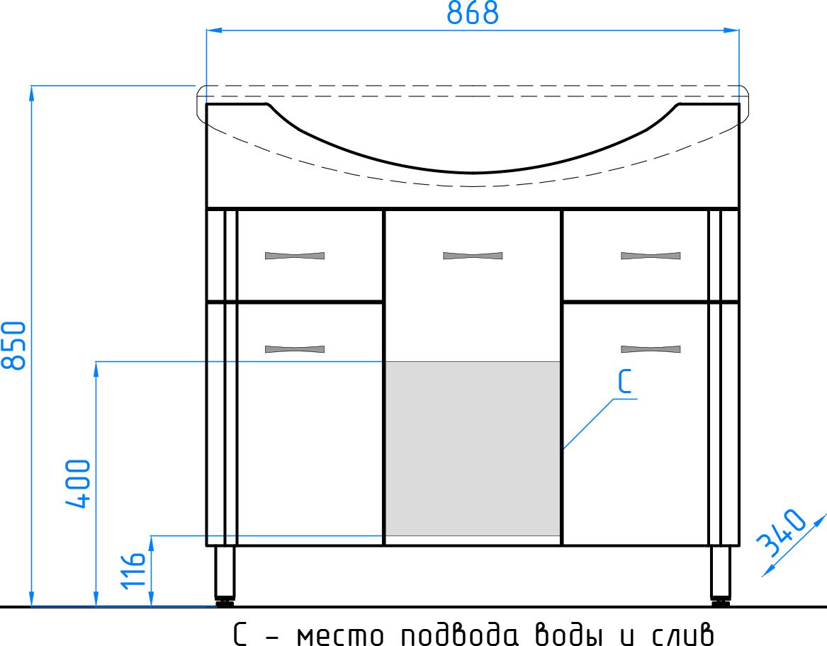 Тумба напольная бренда "Style Line" Эко Стандарт 26 с 2 ящиками. Фурнитура - хром, эксклюзивный декор "Луино" - ламинация внутренней стороны изделия. Направляющие полного выдвижения Hettich; сборка изделия с помощью эксцентриковых стяжек Hafele; все материалы полностью влагостойкие. Данная тумба предусматривает открытую подводку воды