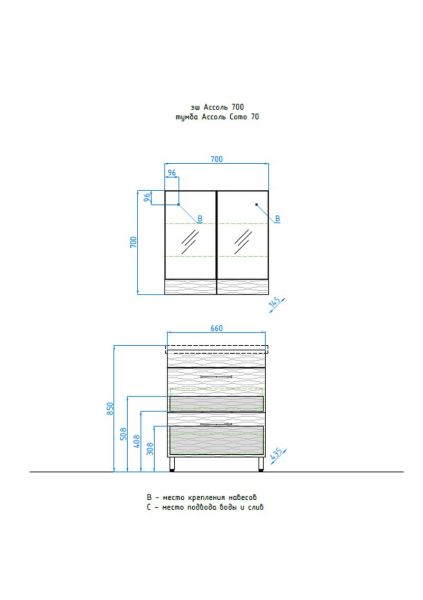 Тумба под раковину Style Line Ассоль 70 ЛС-00000358