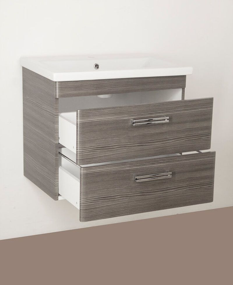 Тумба подвесная бренда "Style Line" коллекции "Лотос" с двумя ящиками в цвете шелк зебрано. Фурнитура - хром. Доводчики "Hettich" обеспечивают плавность и бесшумность хода, высокую надежность и прочность. Боковины изделий в пленке в цвет фасадов.