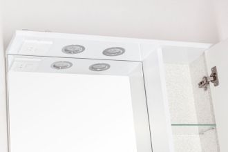 Зеркало-шкаф бренда "Style Line" коллекции "Панда 65/С Фьюжн" с высокоточной обработкой кромки фацетом и подсветкой. Фурнитура - хром. Кромка зеркала "Панда 65/С Фьюжн" зашлифована, что защищает от порезов. Лазерная гравировка фирменного логотипа. Край полочек имеет трапецевидную еврокромку. Эксклюзивный декор "Луино" - ламинация внутренней стороны изделия