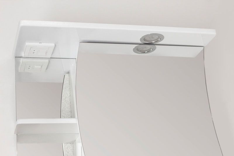 Зеркало-шкаф бренда "Style Line" коллекции "Волна 60/С" с высокоточной обработкой кромки фацетом и подсветкой. Фурнитура - хром. Кромка зеркала "Волна 60/С" зашлифована, что защищает от порезов. Лазерная гравировка фирменного логотипа. Край полочек имеет трапецевидную еврокромку. Эксклюзивный декор "Луино" - ламинация внутренней стороны изделия