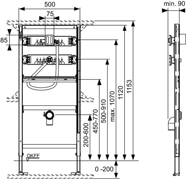 Tece Инсталляция U1 для писсуара, высота 1120 мм 9320008
