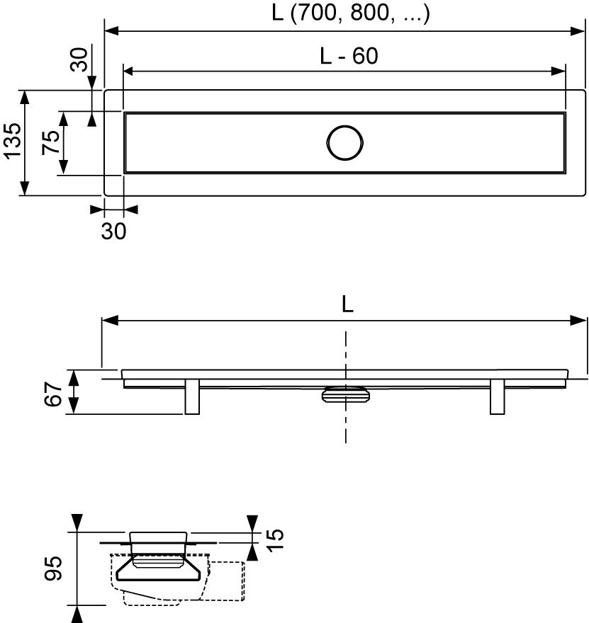 • дренажный канал из нержавеющей стали;