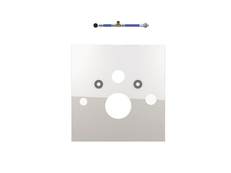 Нижняя стеклянная панель для установки унитазов-биде TOTO Neorest AC и EW, а также Geberit AquaClean 8000/8000 plus, в комплекте со звукоизолирующей прокладкой и отводом для подключения воды внутри бачка. В случае установки унитаза-биде TOTO необходим шланг для подводки воды (арт. 9660001). Размеры (В x Ш x Г): 446 x 430 x 16 мм