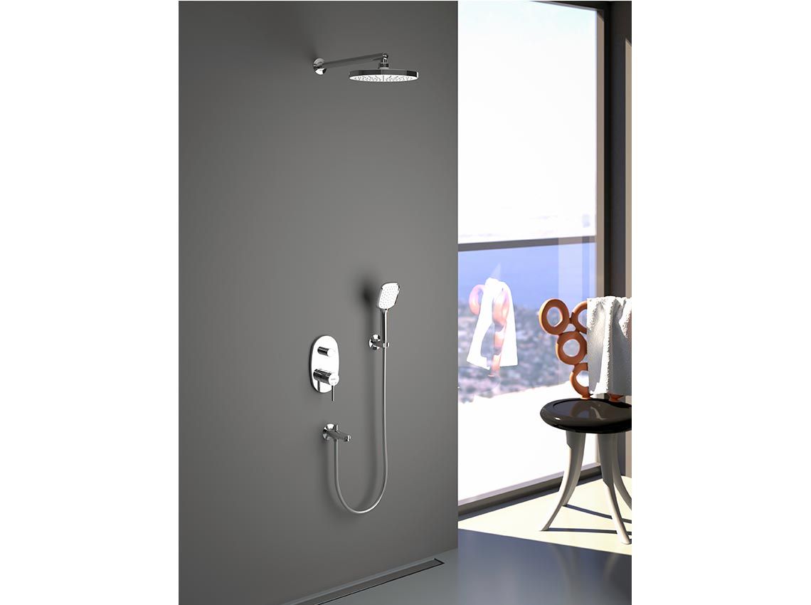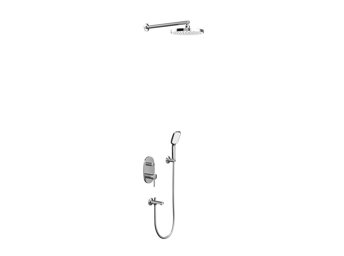 Душевой набор скрытого монтажа TENEDOS. Комплектация: Верхний душ Кронштейн для верхнего душа Ручная лейка Шланг душевой (шланговое подсоединение) Настенный держатель для ручной лейки Панель управления Настенный излив для ванной Скрытая часть для монтажа смесителя (Внутренний комплект ibox) Инструкция по монтажу.