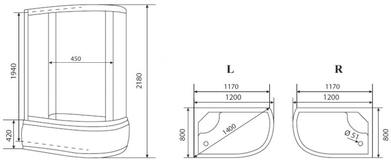 Форма прямоугольная-асимметричная, Управление сенсорное, Зона гидромассажа гидромассаж спины