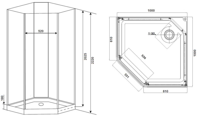 Форма многоугольная, Управление ручное, Зона гидромассажа нет