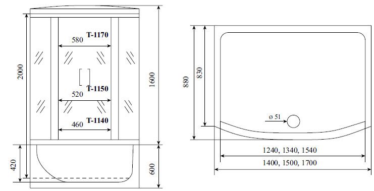 Timo Standart T-6650 Black душевая кабина (150*88*220)