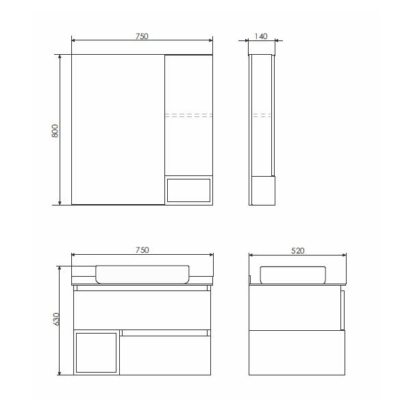 COMFORTY. Тумба-умывальник "Прага-75" дуб белый с графитовой столешницей, с раковиной COMFORTY T-Y9378Основные характеристики:Габариты: 750x630x520 мм