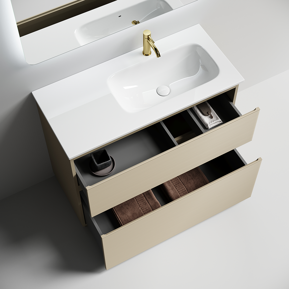 - Тумба напольная с двумя выдвижными ящиками с доводчиками скрытого монтажа