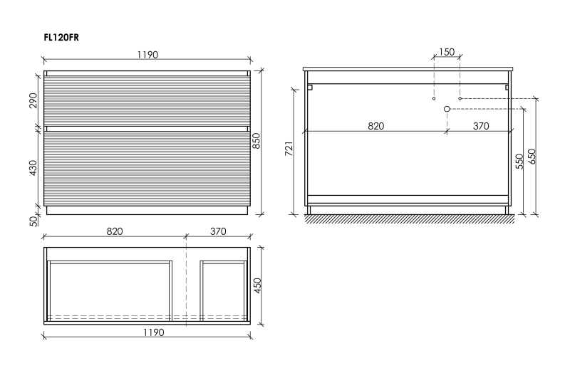 - Тумба напольная с двумя выдвижными ящиками с доводчиками скрытого монтажа