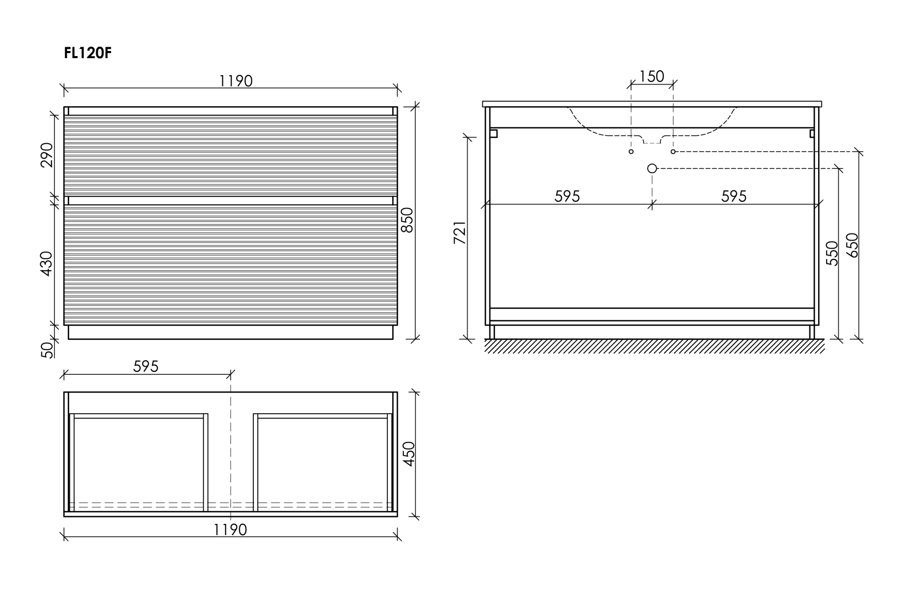 • Размер 1190х445х850