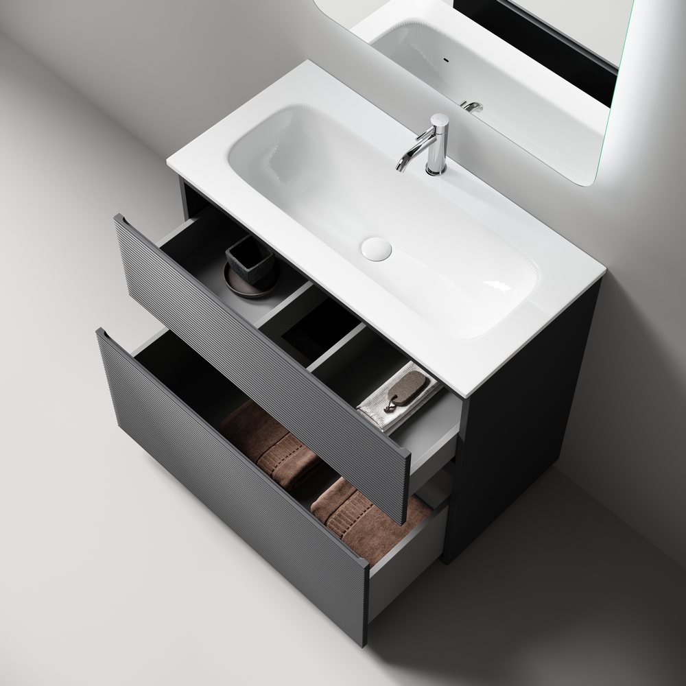 • Каркас и фасад тумбы выполнен из МДФ, покрытие ПВХ - пленка