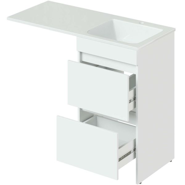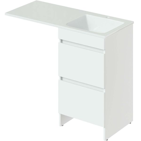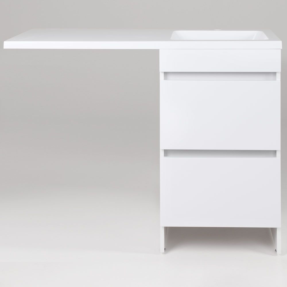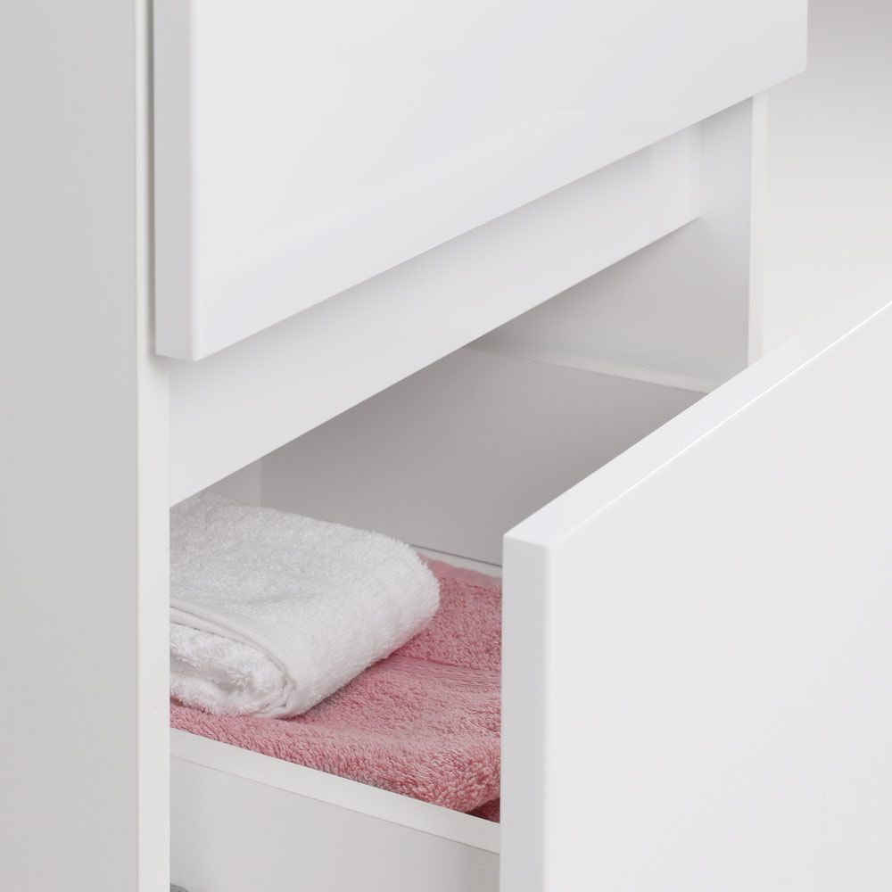 Напольная тумба под стиральную машину. Два ящика. Фасад - МДФ в цвете белый глянец. Корпус - ЛДСП в цвете белый глянец. В комплекте ножки подпятники 4 шт (регулировка по высоте до 10 мм). Поставляется только в комплекте с раковинами OP-110RAL или OP-110RAR, раковина приобретается дополнительно.