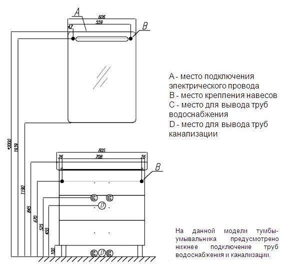 - Дополнительно организовано нижнее подключение труб водоснабжения и канализации