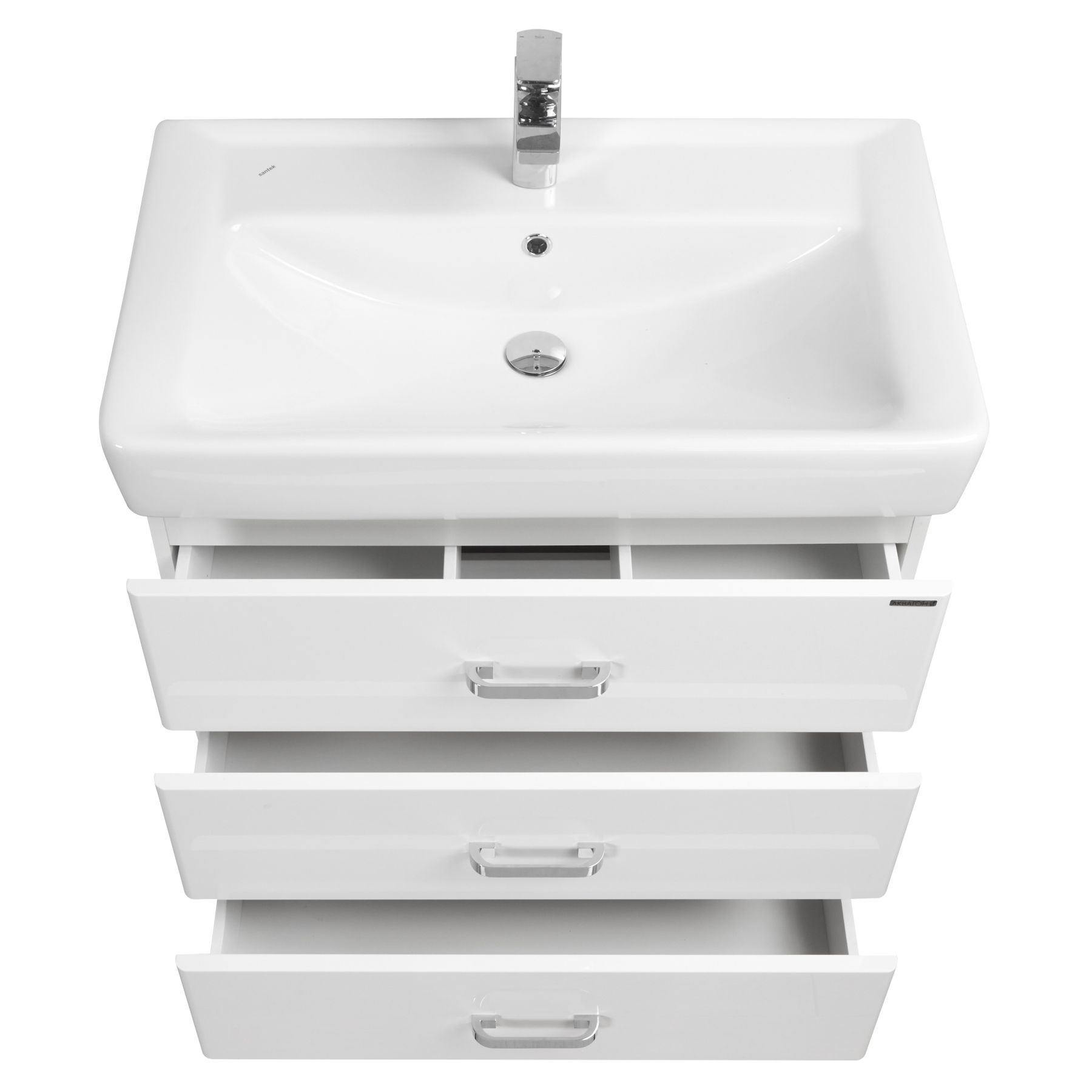 Тумба для комплекта Акватон Америна М 80 белая бесподобно впишется в дизайн любой ванной комнаты, будь то компактная ванная в многоэтажном доме или большой санузел в загородном коттедже.Компания Акватон использует при производстве высококачественные водоотталкивающие материалы (ДСП), соответствующие всем необходимым требованиям безопасности. Коллекция Америна выполнена в эксклюзивном дизайнерском решении в лучших традициях современного стиля. Белый, основной цвет исполнения Акватон Америна, отлично подходящий большинству дизайнерских решений. Тумба под раковину предусматривает удобную и вместительную систему хранения, состоящую из ящиков. Качественные доводчики позволяют обеспечить мягкое и тихое закрывание. Ключевые габариты изделия: ширина 75.8 см, глубина 44.2 см, высота 68.8 см.Россия родина бренда Акватон, вся продукция производится со строгим соблюдением всех стандартов, благодаря чему можно быть абсолютно уверенным в надежности и высоком качестве. Тумба для комплекта Акватон Америна М 80 белая создаст уют и комфорт в любом дизайнерском решении, и ванная комната обретет неповторимый элемент интерьера.