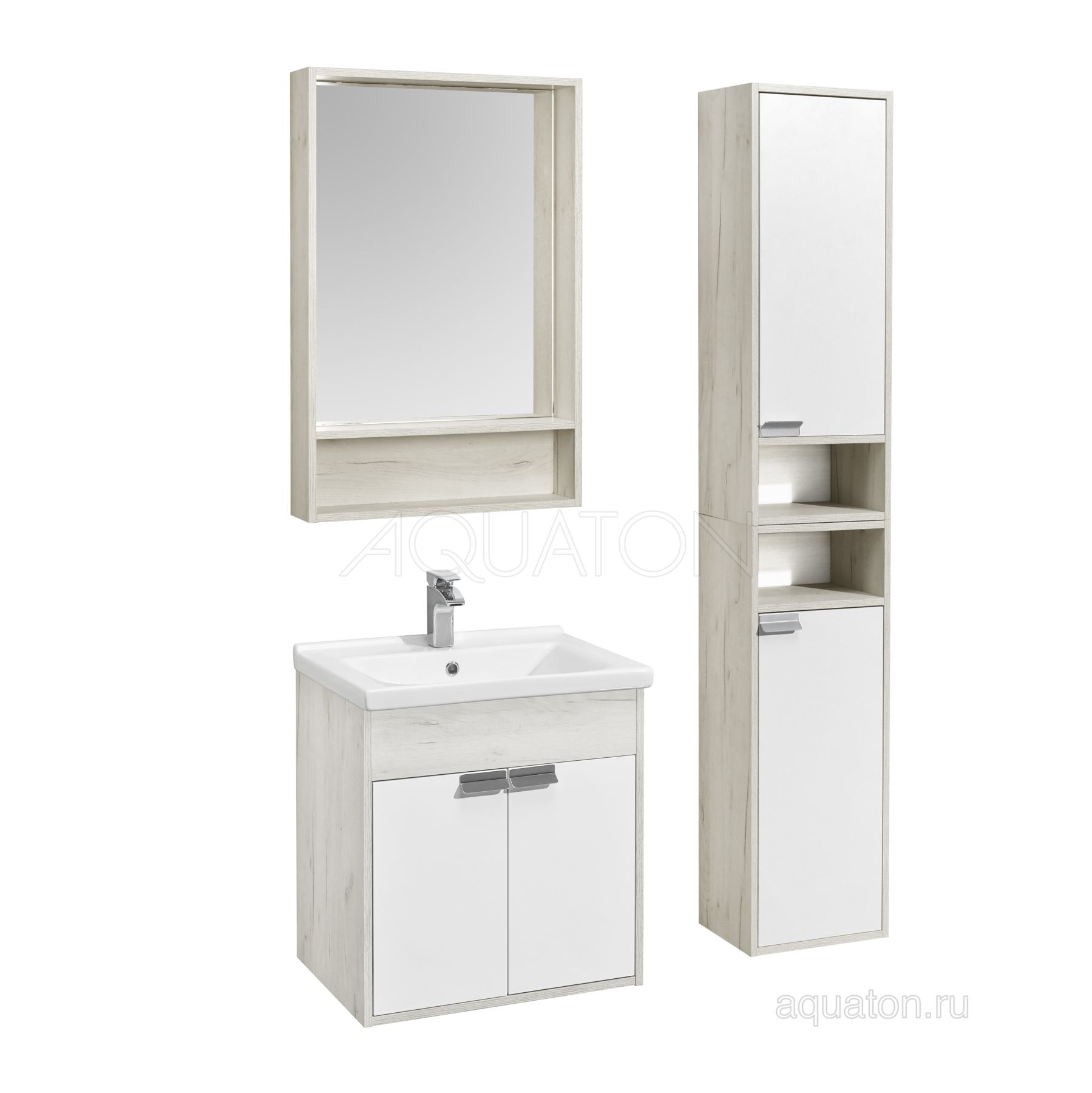 Тумба под раковину Акватон Флай 60см белый/дуб крафт 1A237301FAX10
