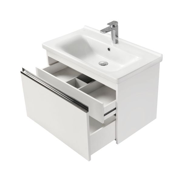 Тумба для комплекта Акватон Капри несравненно впишется в дизайн любой ванной комнаты, будь то компактная ванная в многоэтажном доме или большой санузел в загородном коттедже. Подвесной способ установки дает возможность не только визуально увеличить пространство, но и обеспечивает быстрый и удобный доступ для уборки.Компания Акватон использует при производстве высококачественные водоотталкивающие материалы (ДСП), соответствующие всем необходимым требованиям безопасности. Серия Капри отличается превосходным дизайном с соблюдением всех отличительных элементов современного стиля. Основным цветом, в котором выполнена тумба под раковину Акватон Капри является белый, отлично подходящий большинству дизайнерских решений. Тумба под раковину предусматривает удобную и вместительную систему хранения, состоящую из ящиков. Важные размеры товара: ширина 76 см, глубина 42.9 см, высота 49.3 см.Страной бренда Акватон является Россия, все товары производятся с выполнением соответствующих стандартов качества, что позволяет быть полностью уверенными в долговечности и надежности. Тумба для комплекта Акватон Капри это абсолютный комфорт в современной ванной комнате.