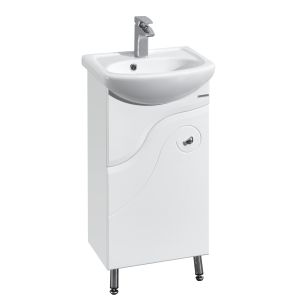 Изящество линий – вот, что отличает эту миниатюрную модель марки «Акватон». Красивая фрезеровка на фасаде тумбы на регулируемых ножках, подчеркивает необычную форму царги.Тумба для комплекта Акватон Колибри 45 белая не только превосходное украшение для ванной комнаты, но и идеальное функциональное решение любого санузла.В производстве используют только качественные влагостойкие материалы (ДСП), в составе которых полностью отсутствуют опасные вещества. Коллекция Колибри выполнена в эксклюзивном дизайнерском решении в лучших традициях современного стиля. Белый, основной цвет исполнения Акватон Колибри, безупречно впишется в любой дизайн проект. Тумба под раковину предусматривает удобную и вместительную систему хранения, состоящую из дверей. Важные габариты изделия: ширина 41 см, глубина 27.9 см, высота 82 см.Россия родина бренда Акватон, вся продукция производится со строгим соблюдением всех стандартов, благодаря чему можно быть абсолютно уверенным в надежности и высоком качестве. Тумба для комплекта Акватон Колибри 45 белая создаст уют и комфорт в любом дизайнерском решении, и ванная комната обретет неповторимый элемент интерьера.