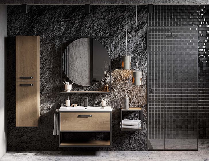 • Тумба Лофт Фабрик 80 в цвете дуб эндгрейн – это сочетание натурального древесного декора и благородства металла