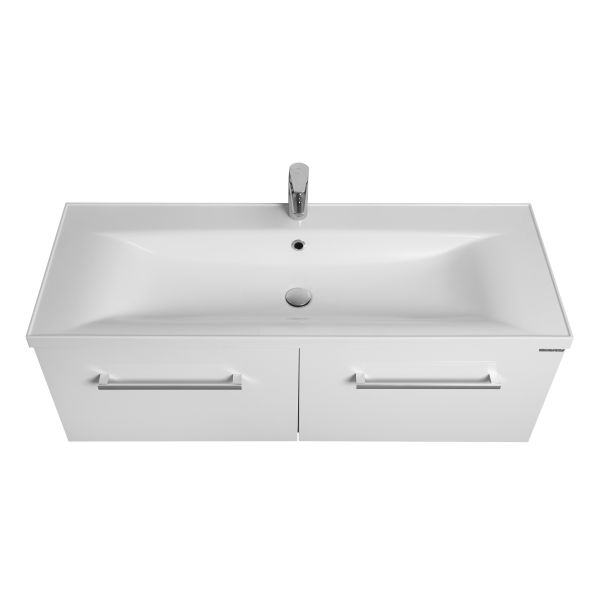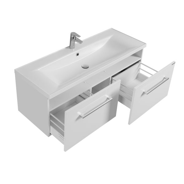 Тумба Мадрид 120 М от AQUATON в белом цвете - воплощение эстетики минимализма в чистом виде. Модель привлекает внимание простотой форм и четкостью линий. Корпус из влагостойкой ЛДСП и фасад из высококачественной МДФ покрыты полиэфирной краской ультрафиолетового отверждения с высокой степенью глянца. Тумба оснащена двумя вместительными ящиками с доводчиками и встроенной системой плавного закрывания и комплектуется удобной раковиной из литого мрамора. Фасад верхнего ящика визуально разделен на два отсека. Для комплектации тумбы отлично подходит прямоугольная раковина AQUATON Айрис.