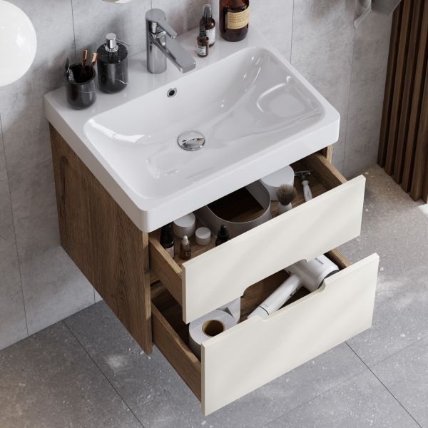 Тумба под раковину Акватон Оливия 55см бежевый/дуб веллингтон 1A254201OLVG0