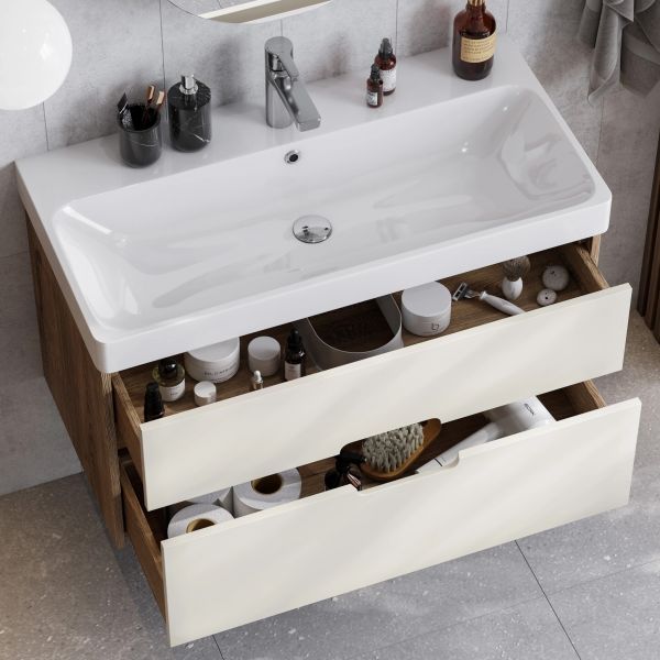 Тумба под раковину Акватон Оливия 90см бежевый/дуб веллингтон 1A254401OLVG0 купить