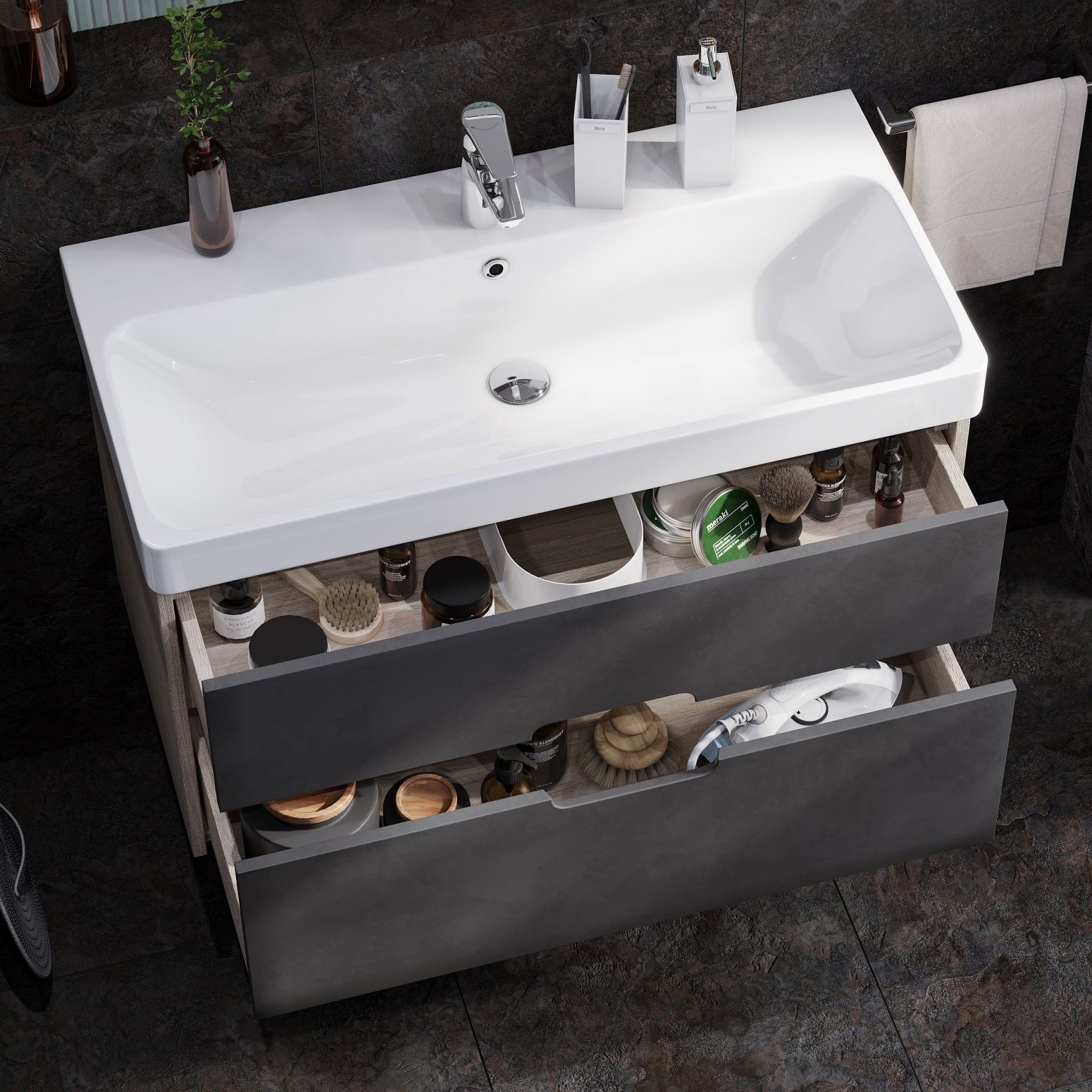 Тумба для комплекта Акватон Оливия 90 грей/дуб ойстер замечательно впишется в дизайн любой ванной комнаты, будь то компактная ванная в многоэтажном доме или большой санузел в загородном коттедже. Подвесной способ установки дает возможность не только визуально увеличить пространство, но и обеспечивает быстрый и удобный доступ для уборки.Компания Акватон использует при производстве высококачественные водоотталкивающие материалы (ДСП), соответствующие всем необходимым требованиям безопасности. Коллекция Оливия выполнена в эксклюзивном дизайнерском решении в лучших традициях современного стиля. Светлое дерево, основной цвет исполнения Акватон Оливия, отлично подходящий большинству дизайнерских решений. Тумба под раковину предусматривает удобную и вместительную систему хранения, состоящую из ящиков. Качественные доводчики позволяют обеспечить мягкое и тихое закрывание. Ключевые габариты изделия: ширина 88.2 см, глубина 42.7 см, высота 48 см.Россия родина бренда Акватон, вся продукция производится со строгим соблюдением всех стандартов, благодаря чему можно быть абсолютно уверенным в надежности и высоком качестве. Тумба для комплекта Акватон Оливия 90 грей/дуб ойстер это абсолютный комфорт в современной ванной комнате.