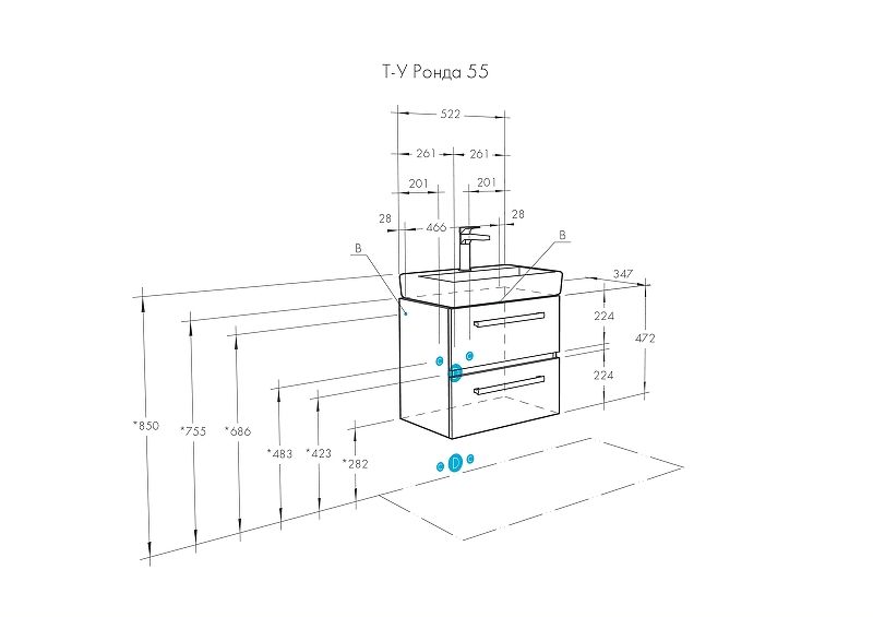 Тумба под раковину Акватон Ронда 55см дуб сомерсет/венге 1A207601RSC20