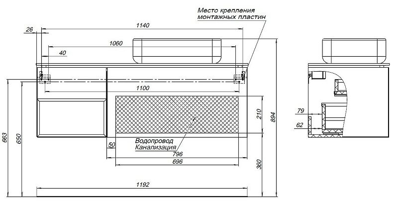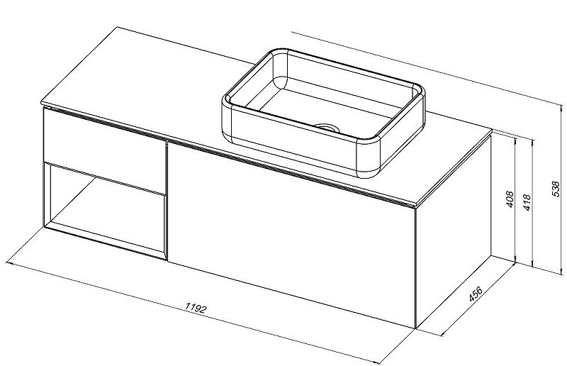 Габариты корпуса тумбы (ШхВхГ): 1192х408х456 мм.