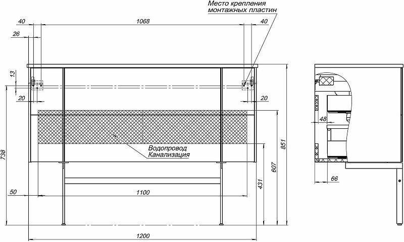 Габариты корпуса тумбы (ШхВхГ): 1200х500х462 мм.