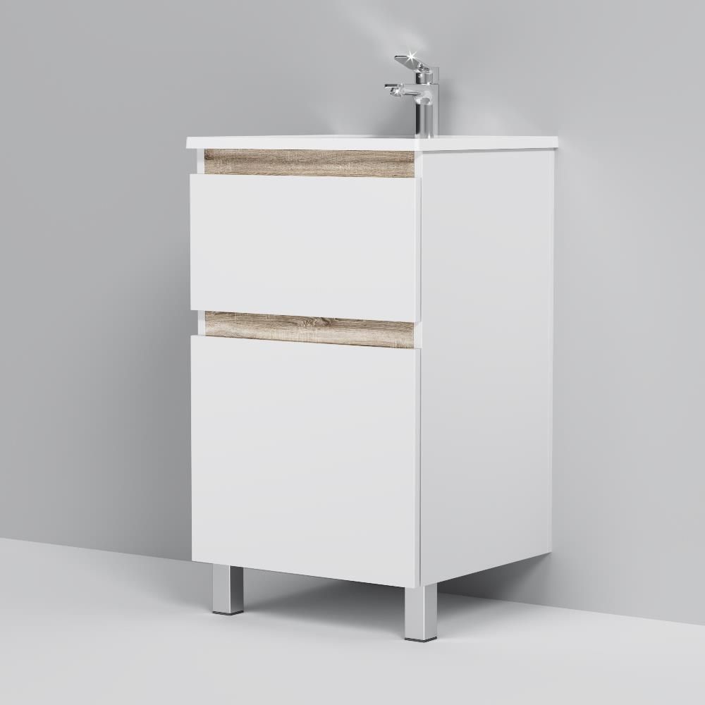 Напольная тумба бренда AM.PM коллекции X-Joy отличается эстетичным сочетанием цветов и фактур от дизайн-агентства Danelon Meroni: белые глянцевые фасады дополнены отделкой под светлое дерево. Функциональный органайзер в первом ящике позволит хранить необходимые косметические средства под рукой и в полном порядке. Внутреннее покрытие каждого ящика выполнено в современном цвете "антрацит" и имеет противоскользящее покрытие. Материал изделия - МДФ, ЛДСП. Размер тумбы (Ш/Г/В): 490x450x850. Цвет тумбы - белый глянец.