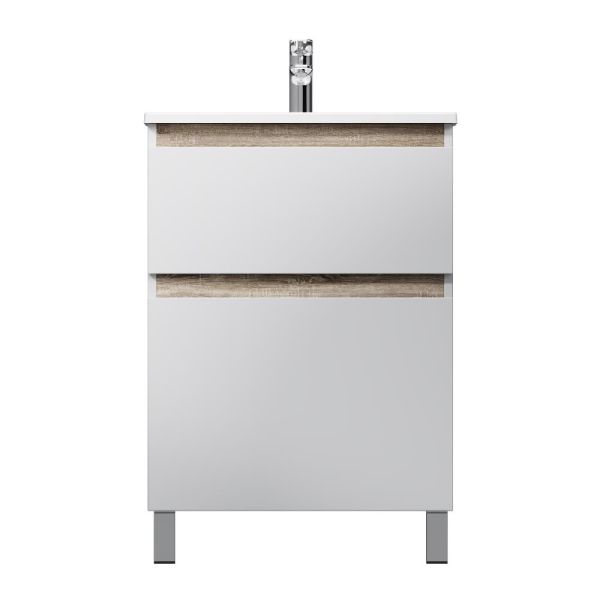 Напольная тумба бренда AM.PM коллекции X-Joy отличается эстетичным сочетанием цветов и фактур от дизайн-агентства Danelon Meroni: белые глянцевые фасады дополнены отделкой под светлое дерево. Функциональный органайзер в первом ящике позволит хранить необходимые косметические средства под рукой и в полном порядке. Внутреннее покрытие каждого ящика выполнено в современном цвете "антрацит" и имеет противоскользящее покрытие. Материал изделия - МДФ, ЛДСП. Размер тумбы (Ш/Г/В): 590x450x850. Цвет тумбы - белый глянец.