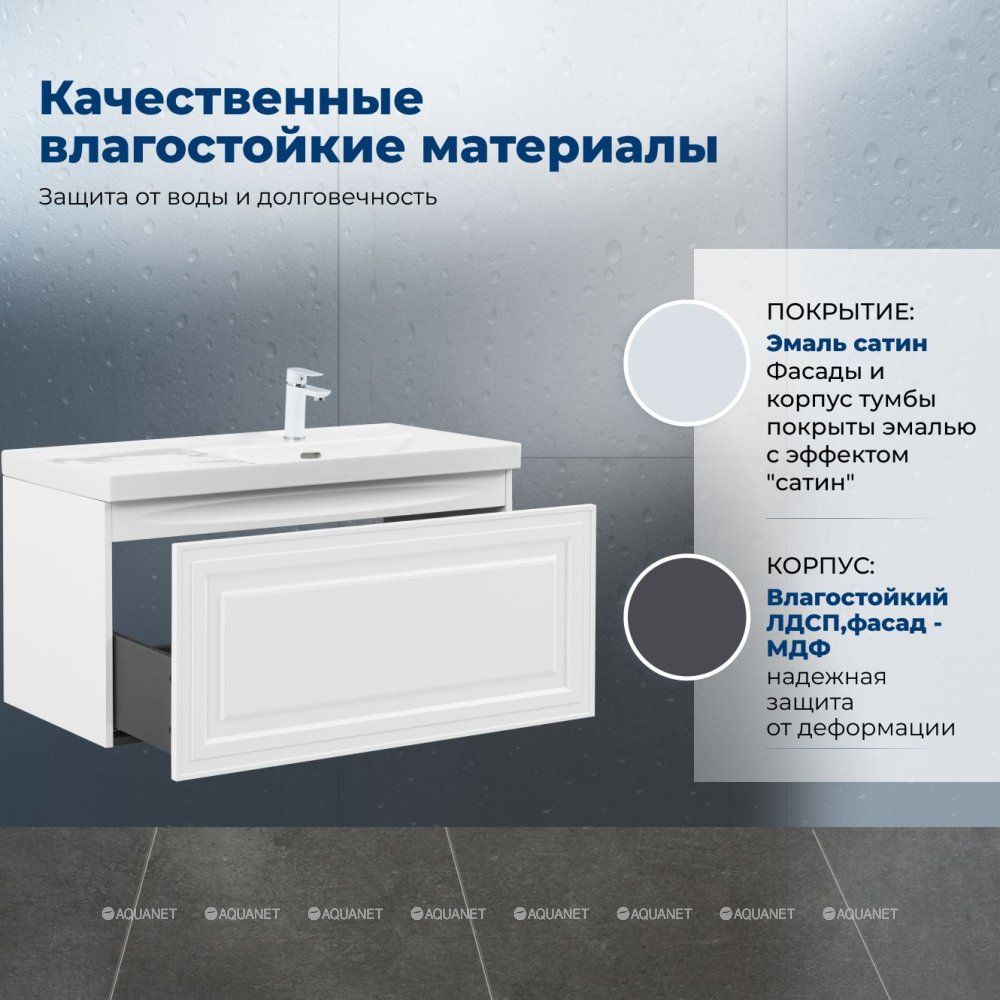 Тумба под раковину Aquanet Агата 100 белый сатин — это стильное и функциональное решение для ванной комнаты. Она сочетает в себе прочность, устойчивость к влаге и продуманную конструкцию.