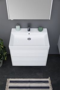 Тумба Aquanet Бруклин 60 белого цвета предназначена для подвесной установки Изделие отвечает тенденциям минимализма Аскетизм четких линий и обтекаемых форм в ней доведен до совершенства В модели нет никаких выделяющихся деталей, и даже ручки интегрированные, когда открывание происходит за счет выступающей детали верхней или нижней части фасада, которая срезана под углом, в результате чего образуется выемка, служащая ручкой В тумбе ручка устроена таким образом у верхнего ящика в нижней части фасада, а у нижнего – в верхней Такое простое решение добавляет изысканности внешнему виду изделия Раковина из керамики с тонкими изящными бортиками идет размер в размер с тумбой, ширина которой 60 см, в результате чего все изделие выглядит как единое целое Корпус изделия выполнен из выкрашенного белой краской влагостойкого ЛДСП, фасады – из МДФ На контрасте с белизной внешних деталей стильно смотрится корпус выдвижных ящиков, выполненный в цвете «дуб сонома» Нижний ящик тумбы имеет большую зону хранения, верхний разделен на несколько отделений, которые помогут грамотно разложить все необходимое по своим местам Тумба предлагается без раковины