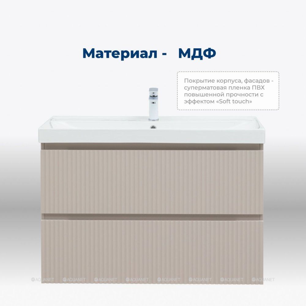 Тумба под раковину Aquanet Джейн (Flat) 90 бежевый сочетает в себе функциональность, прочность и современный дизайн. Подходит для помещений с повышенной влажностью.