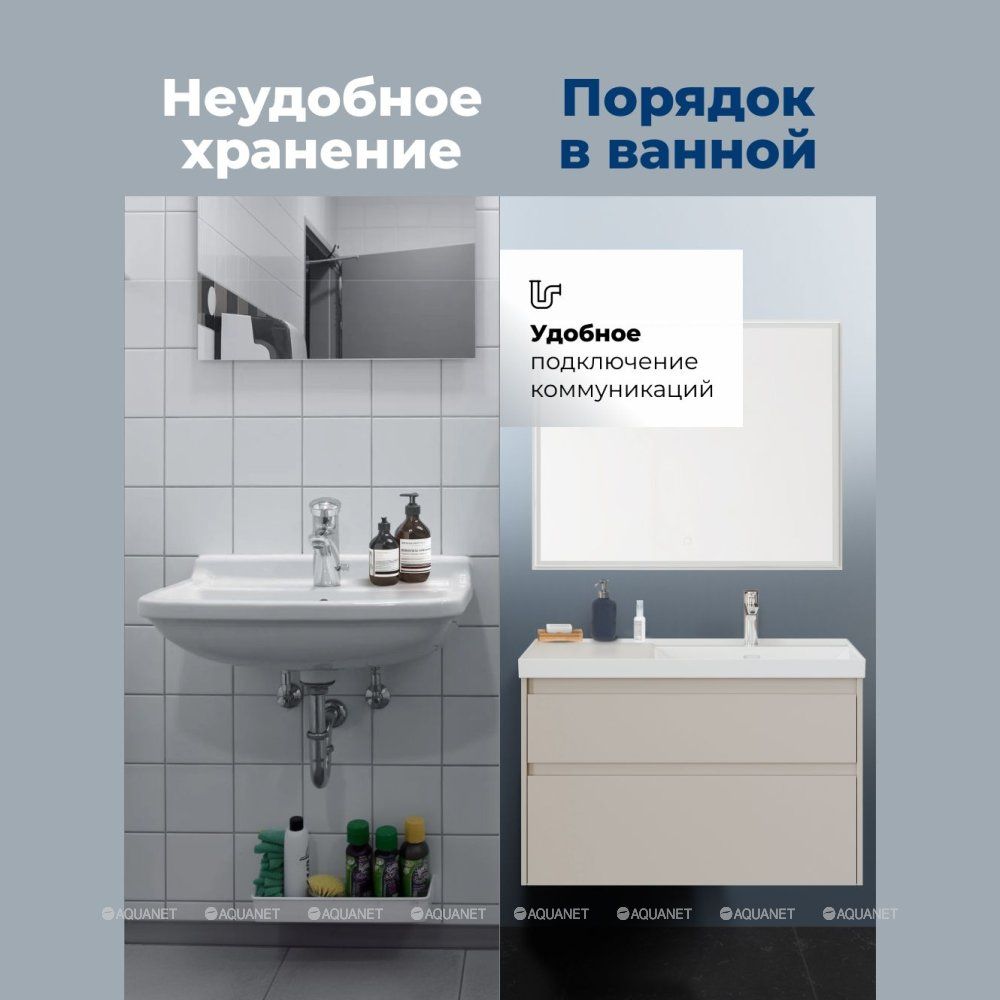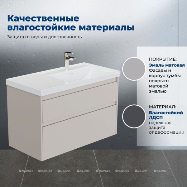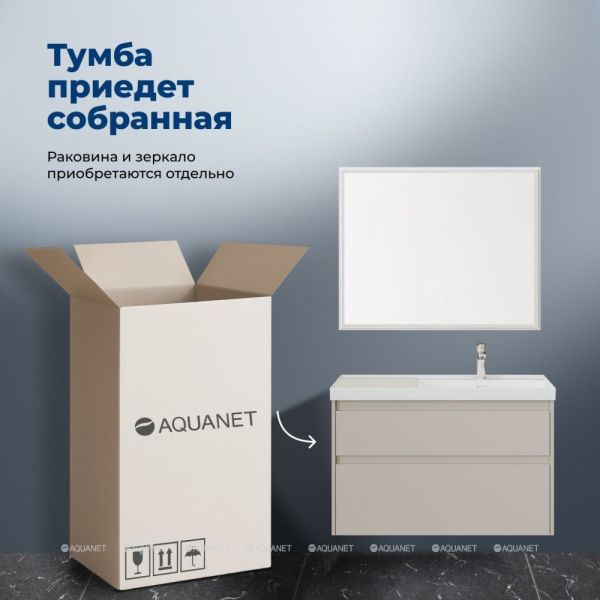 Тумба под раковину Aquanet Nova Lite 2.0 100 в бежевом матовым покрытием станет практичным доп... Подробнее