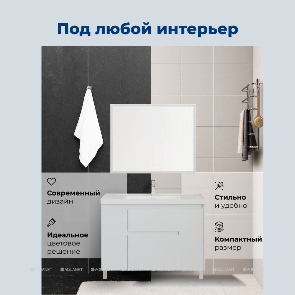 Тумба под раковину Aquanet Nova Lite 2.0 110 в белом цвете с глянцевым покрытием станет практичным дополнением ванной комнаты. Ее лаконичный дизайн сочетается с разными стилями интерьера — от минимализма до классики.