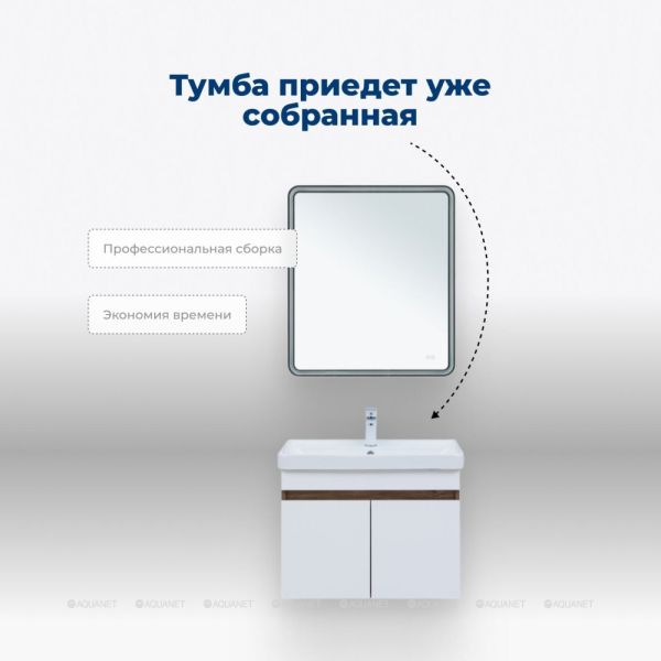 Тумба Aquanet Оптима 70 продумана до мелочей. В ней предусмотрено удобное место для подводки коммуникаций снизу, что облегчает установку и подключение сантехнического оборудования.